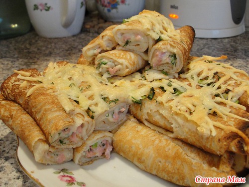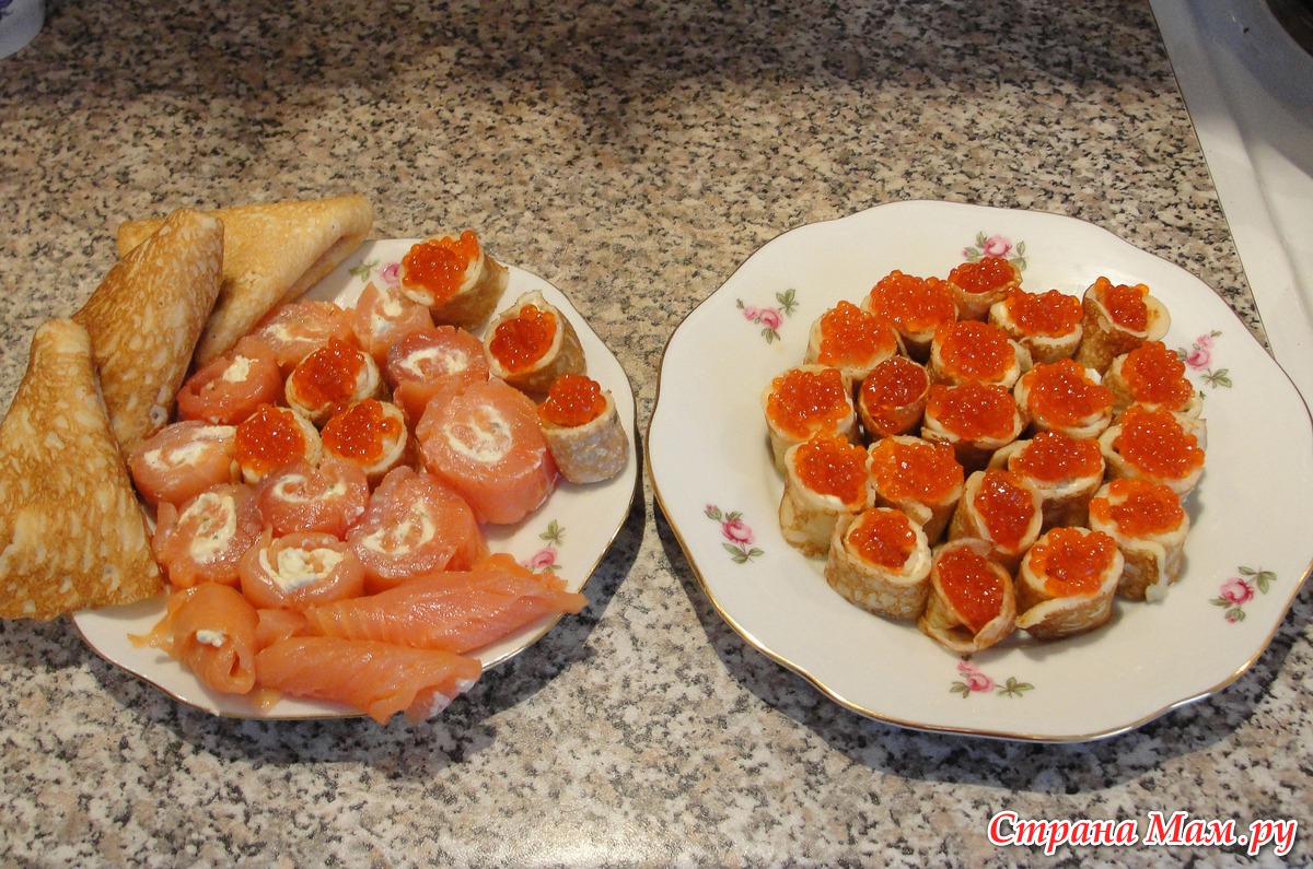 К обеду приготовила блинчики по-царски с красной рыбой и икрой,