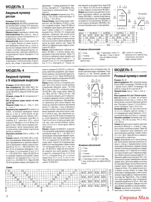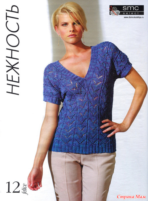 Плотность вязания: 20 п. и 27 р. лиц. глади и ажурного мотива спицами № 4 = 10 х 10 см.