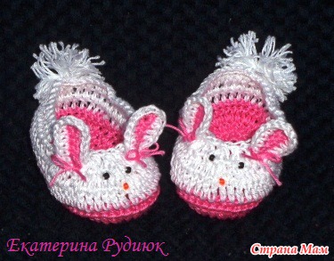 Милейшие пинетки-зайчики для новорожденной малышки! Выполнены из 100% хлопка. Пусть девочка растет здоровой и счастливой!