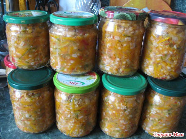 Все перемешать, добавить 6 чайных ложек соли, 6 чайн. ложек песка и 200-250 гр. подсолнечного масла. Варить час, добавив в конце варки 100 грамм уксуса 9%.