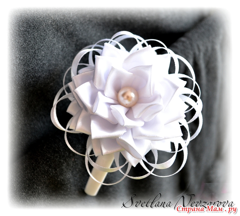 Лента в косу. Делала сверху на уточке, а нижний цветок на резинке. Видела, что некоторые делают как-то по-другому... а как удобнее вплетать?