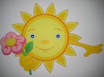 Девочки, ещё я вот такое солнышко делала, для другой внучки. Это солнышко думаю всем знакомо, рисунок очень часто встречается в интернете. Таким я его придумала сделать в объёмной аппликации.