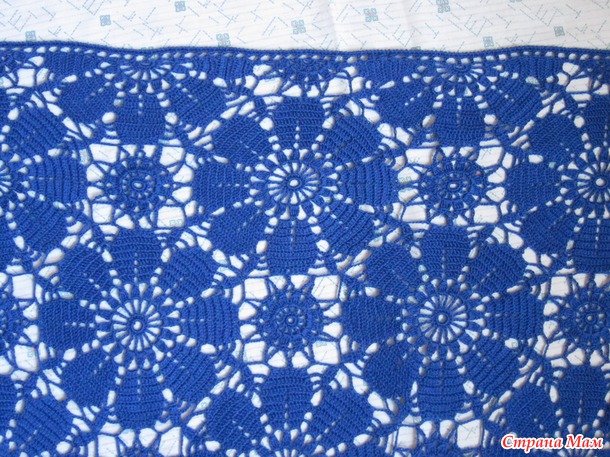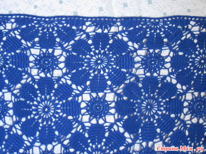 За основу взяла схему мотива из журнала Дуплет (номер не запомнила). Последние 2 ряда схемы слегка изменила. Дырочки между мотивами заполняла маленькими мотивами - придумала сама. Верх и бока шали выравнивала половинками больших и маленьких мотивов.