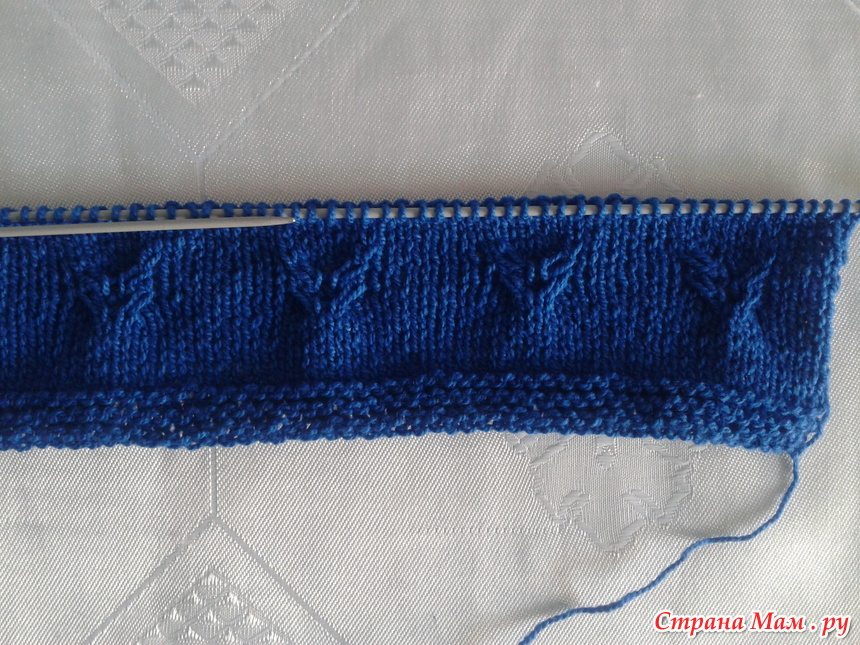 Вот моё начало. Я набрала на спицы 338 петель и вяжу вкруговую.