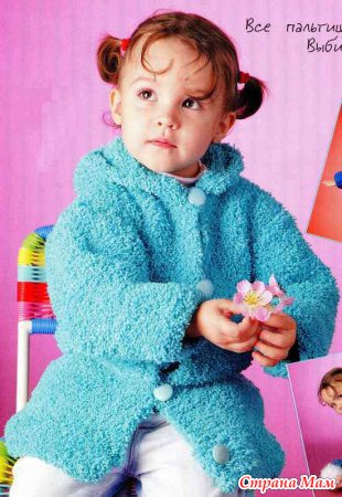 Моей дочке 4 года хотелось что то для нее связать крючком но никак не приходит в голову ничего путного. Нашла тут у нас в стране мам вот такое пальтишко с капюшоном:
