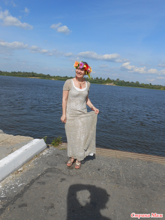 Насмотревшись на ваши произведения, загорелось мне тоже связать филеечку, до этого раза, никогда ее не вязала, тем более такую большую, т. к. замахнулась я на платье в пол.