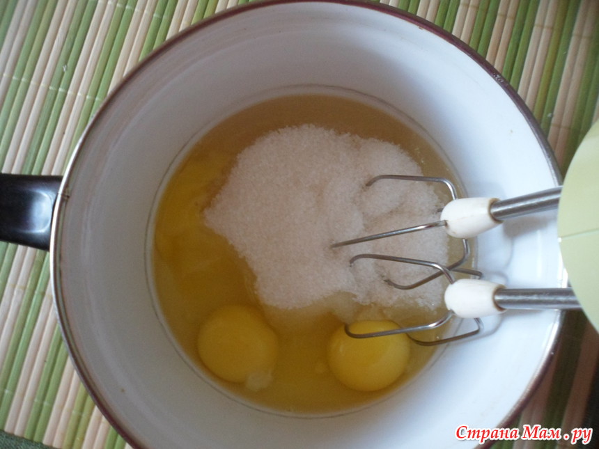 заводим тесто: взбиваем 3 яйца со стаканом сахара