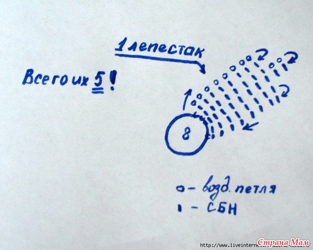 Каждый рядок последним столбиком не забываем скреплять за внутреннее кольцо. Лепески должны "сидеть" туго, их основания пальцами в процессе вязания сгоняйте потуже! - тогда и войдут все в кольцо и лягут красиво.