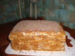 Вот сегодня первый раз испекла торт.Правда с украшением слабовато вышло,но я учусь,так что не судите строго.Рецепт прилагается.