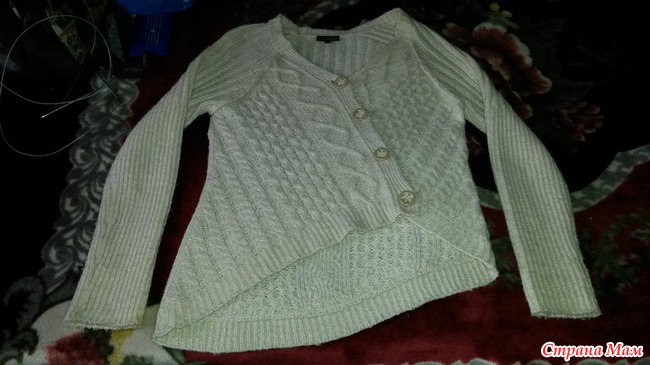 Это образец кофты, которую мне заказали связать, клиентка очень любила эту кофточку и хочет. что-бы я связала такую-же! Ассиметричные полочки