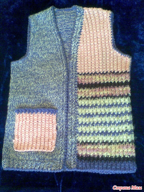 Вот как я использовала остатки пряжи, разной по качеству, фактуре и цвету: Свитер получился очень мягким, приятным для тела. Для жилета собрала все, что можно и нельзя . На спинке жилета провязала резинку, что очень удобно в носке. Думаю, на даче все пригодится! Читать полностью