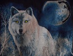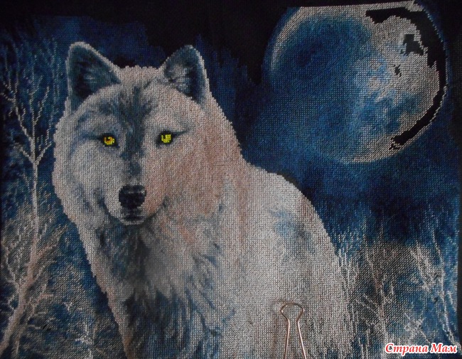 Да вот незадача, волк отшит, да не хватило светящихся в темноте ниток для луны.