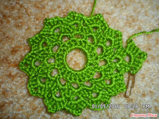 Мне не совсем понравилась в середине дырка, хотя так было по схеме, но всё же я распустила и сделала традиционную серединку и вот, что у меня получилось в итоге: