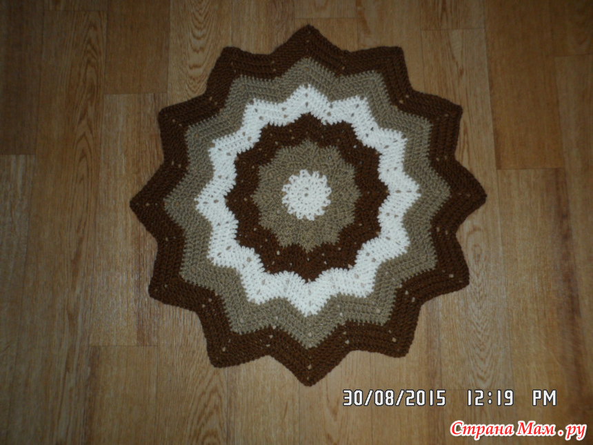 и всё началось. Если сказать, что пока я вязала этот коврик, то распускала его раз 10, то это ничего не сказать, распускала я его гораздо больше раз