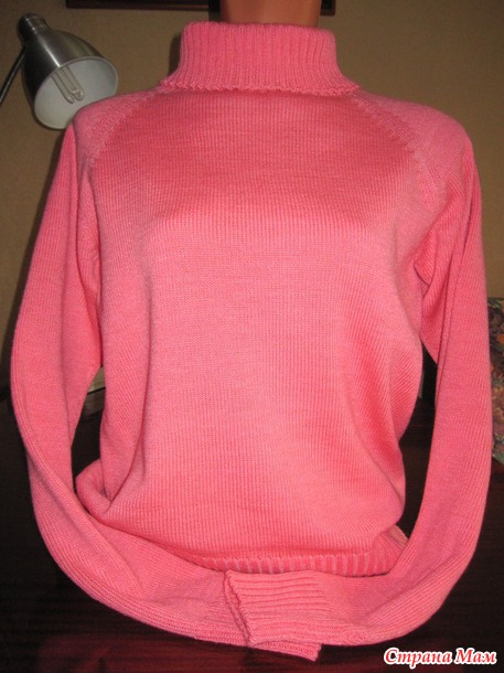 Если бы вязать такой свитер на заказ, я бы лучше отдельно связала резинку, а потом ее прикетлевала бы в карман - смотрится гораздо аккуратнее.