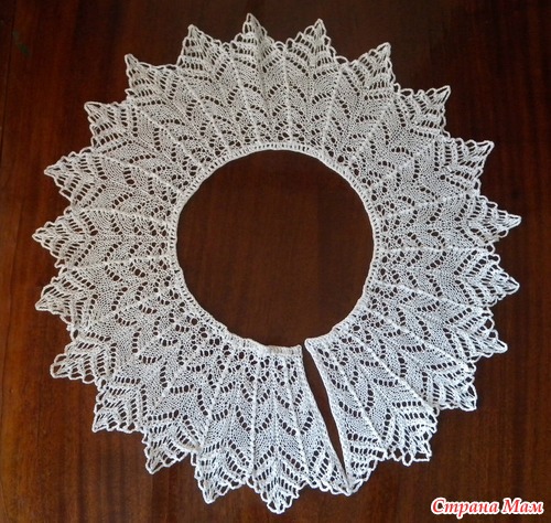 И попросила меня бабушка одной перво-классницы связать воротник на форму. Я принесла ей несколько вариантов воротников и она выбрала этот -
