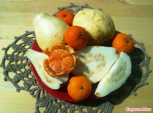 Гуава... божественный аромат сшибает с ног, он разносится по всему фруктовому отделу супермаркета, а сок с мякотью из гуавы, особенно свежевыжатый, - великолепен...