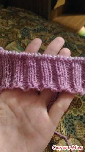 Т. е. мы вяжем узором "резинка 2х2" постепенно прибавляя по бокам петли.
