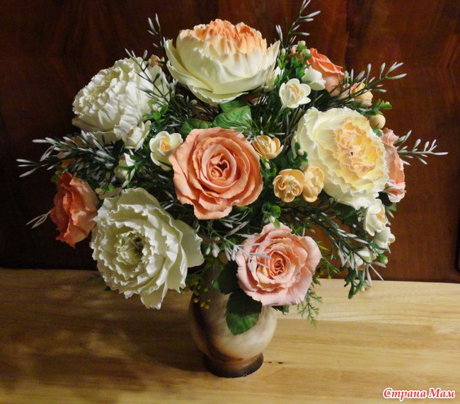 Букет из винтажных пионов и розочек. размер 35см. высота, в диаметре если сверху смотреть 30см.