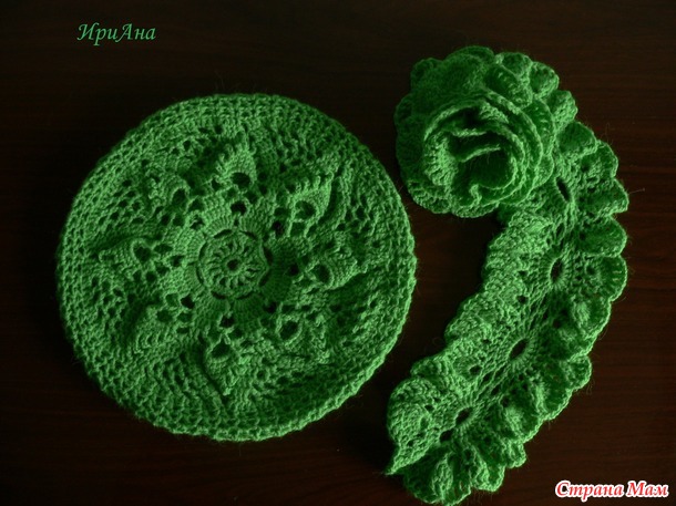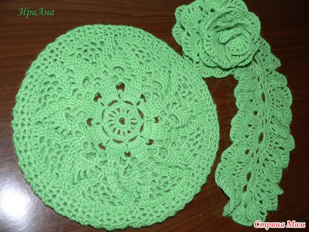 Зелёные берет и шарф из пряжи из Троицка" СамаЯ" 50% шерсть, 50% ангора. Вязала в две нити. Шарф "Вивьен".