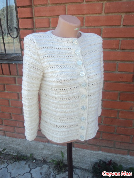 Красивая кофточка, мне она тоже очень нравиться. Кстати сегодня закончила для своей дочурки, правда пришлось чуть дополнить ее, так как сделала ошибку, пропарив изделие.