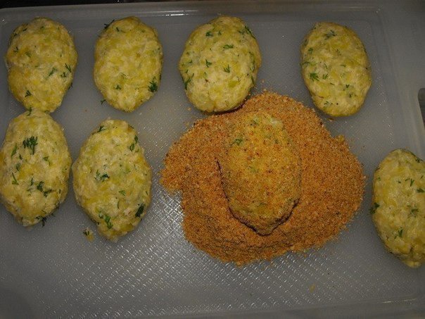 Сформируйте из этой массы котлетки, обваляйте в панировочных сухарях