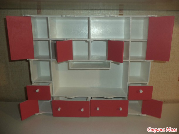 Скажу сразу, что моей целью создания кукольной мебели было удобство для игры и, насколько это возможно, многофункциональность поделок. Поэтому в моих шкафчиках все дверцы можно открыть, ящички - выдвинуть.