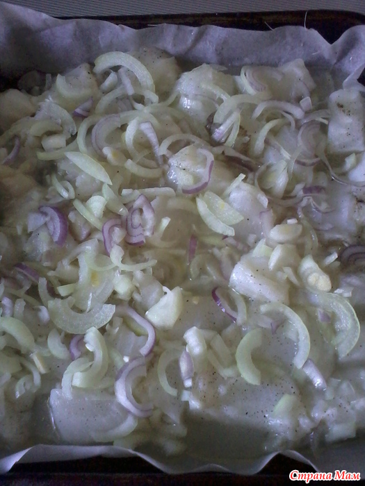 Режим лук и покрываем им нашу рыбку