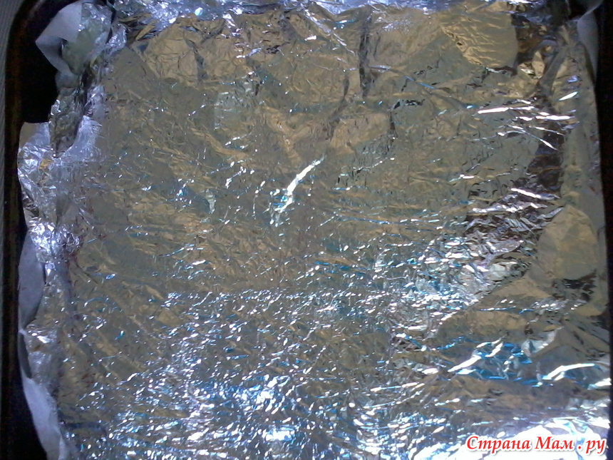 Сверху всё заливаем соусом из майонеза и сметаны и закрываем фольгой