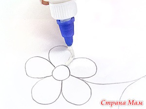 3. Нанесите клей тонкой полоской по контуру на небольшой участок узора.