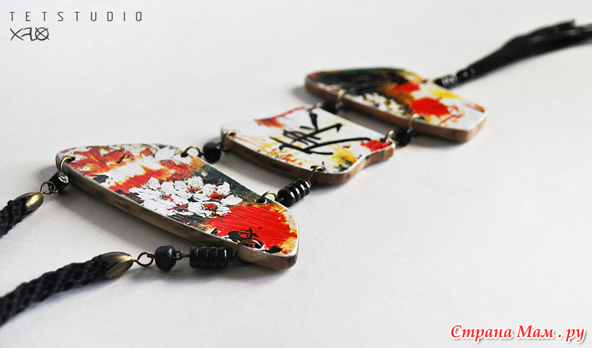 Оригинальное колье-подвеска в виде японского иероглифа, выполнено из натурального дерева яблони,