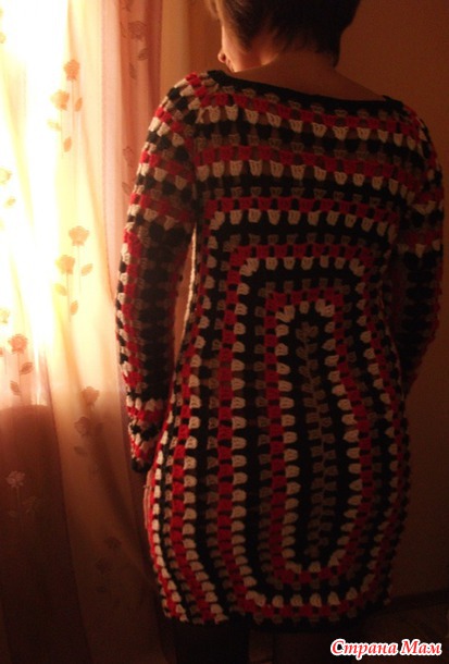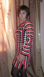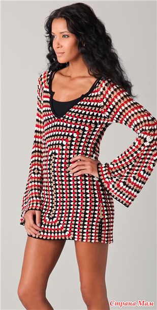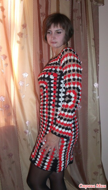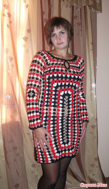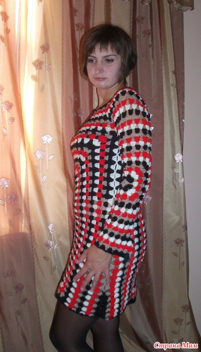 Туника связана крючком, остатки пряжи полушерсть, 280-300 м /100гр., красного, бежевого, черного, молочногоцвета. Каждого по 100гр примерно, крючок №3