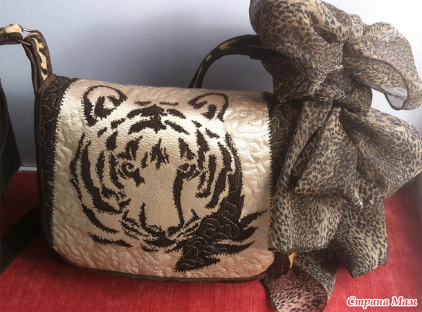 Ещё одна сумочка с Тигром. Рисуночек нашла в нэте и он мне очень понравился. Внутри карман под мелочь и второй карман на молнии с обратной стороны. Планирую сшить ещё парочку сумочек такого плана с другими животными или птицами.