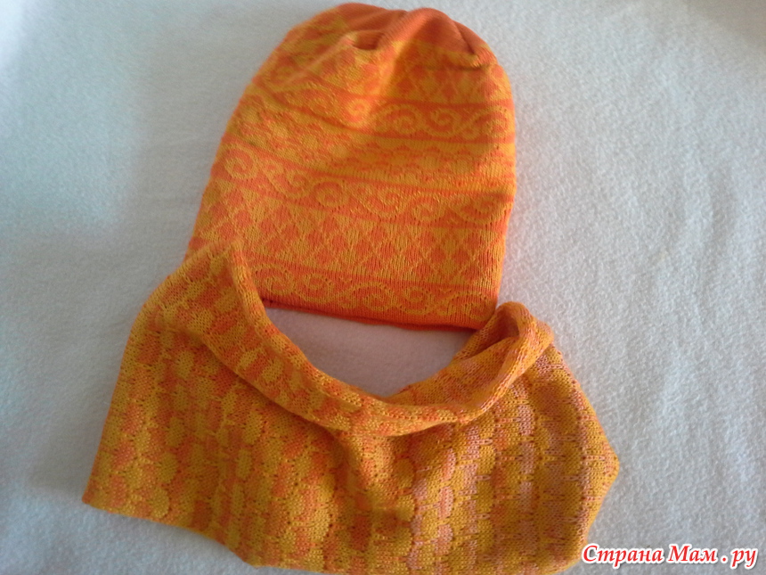 Шапочка двойная, шарфик тоже. Шарф вязала прессом.