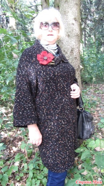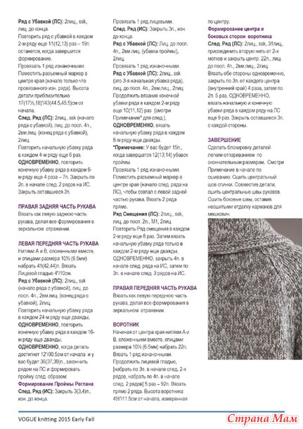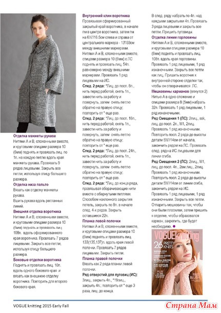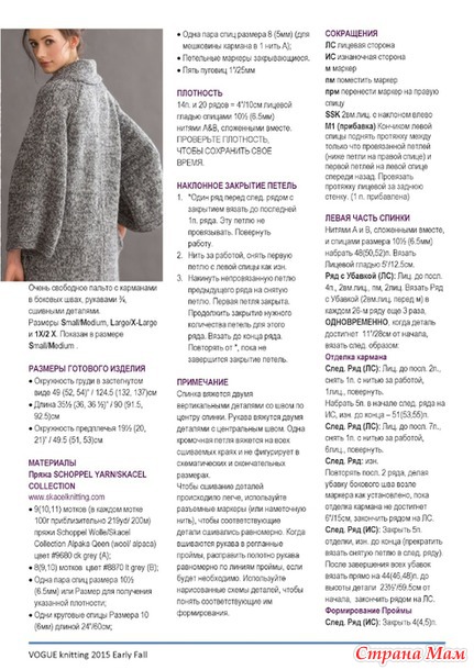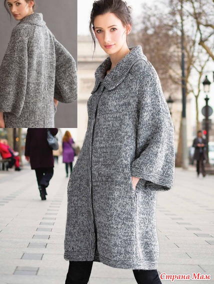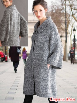 Свободное вязаное пальто спицами из Vogue осень 2015