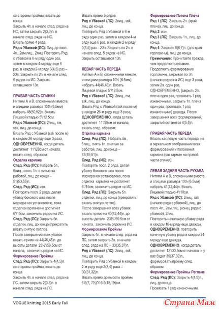 Плотность вязания из расчета 14 петель на 20 рядов в образце размером 10 на 10 см, связанным лицевой гладью спицами 6.5 мм и пряжей этих двух цветов, взятых вместе.