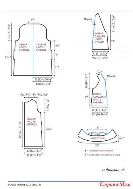 Рукава связаны также из двух деталей, которые затем сшиваются.