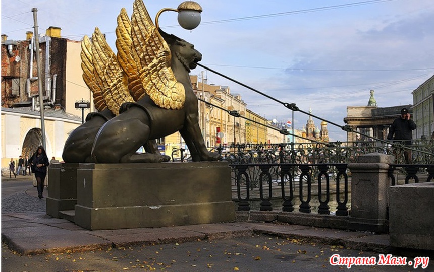 Третьим «звериным» мостом северной столицы является Египетский мост (1825/26гг), он раскинулся через Фонтанку и украшен и вовсе восточными чудовищами – сфинксами. Только на сей раз 4 фигуры этих «зверушек» «не работают», т. е. ничего не держат и не скрывают, а просто встречают вас при входе на мост - они развернуты от реки. Появление этих необычных в российской культуре «животных» - своеобразная дань тогдашней моде на повальное увлечение в конце 19 века мистикой древнего Египта. Тем более, что сами сфинксы здесь мало похожи на своих чудищ-прародителей – суровых каменных изваяний.