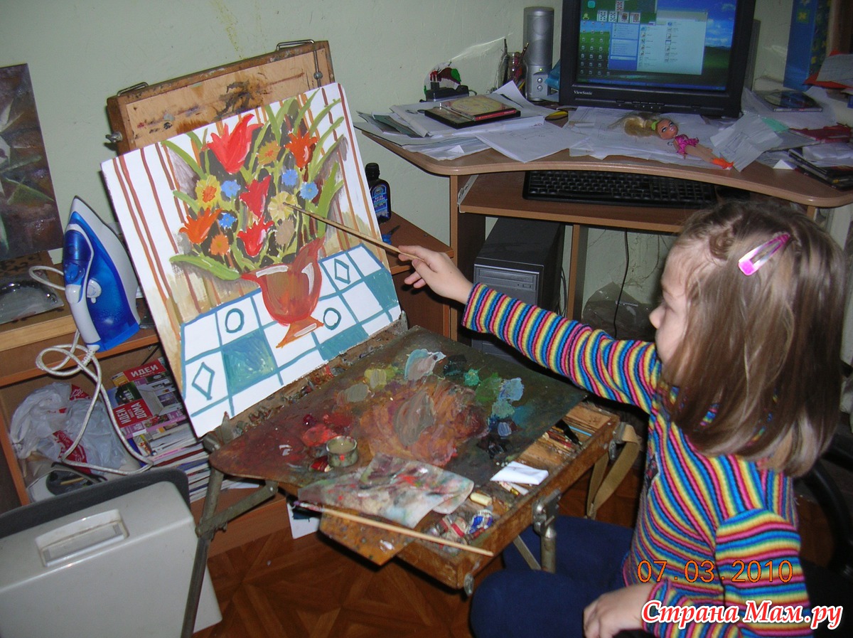 Правда сейчас рисует мало-перешли плотно на лепку....Пластилин,глина,тесто- всё в ход идёт...