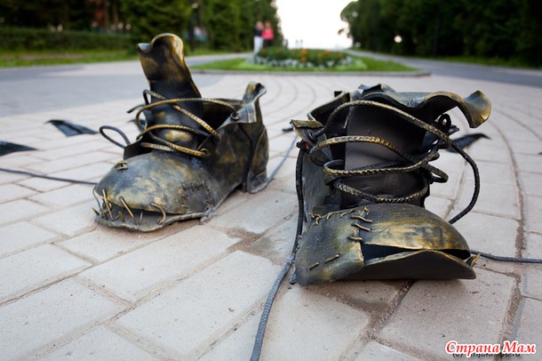 Каждый может примерить ботинки, сделать оригинальное фото и обязательно загадать желание. Вокруг ботинок расположены стрелки компаса - это символ того, что любой житель или гость города может сам выбрать свое направление в жизни.