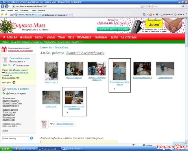 Поясните пожалуйста - при загрузке фотографий появляется строчка, где можно написать пояснение. Так получилось, что в альбоме у меня на страничке если нажать на фотку - фотка увеличивается, а если нажать на коментарий - то появляется "Страница не найдена Запрашиваемая вами страница photo/686/ не найдена." А на выделенных фотках дается ссылки на других деток в чужих альбомах, конкретно: фотка 1