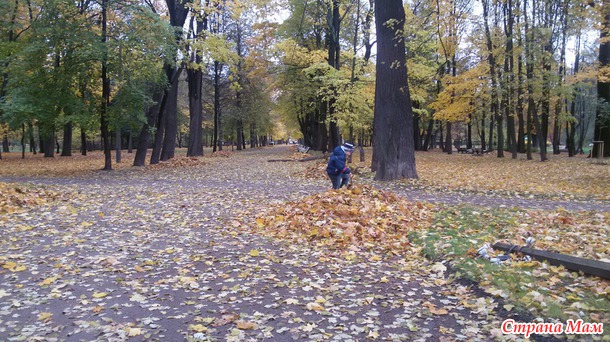 нашли каштаны и желудей набрали. и конечно же попрыгали на кучах листьев