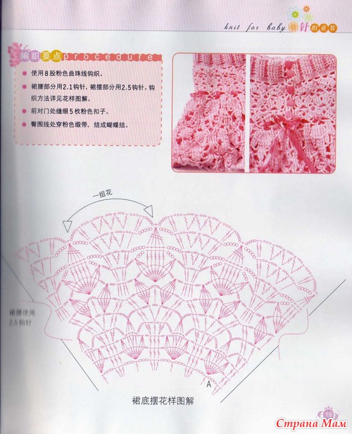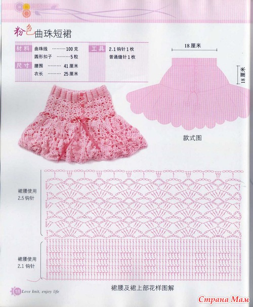 нее... я там не нашла количество петель сколько нужно набирать, поэтому вязала так: позвонила подруге, попросила ее мелочушку в "талии" померять и длину от талии до колена. Пряжа у меня семеновская кабле, вроде, этикетки нет, был начатый клубок. Набрала 120 петель, и с них вязала. Вссе методом тыка )))) Надеюсь, что будет к лету как раз на малышку.