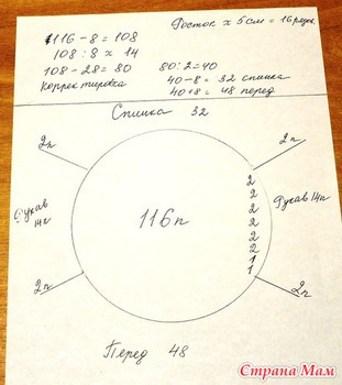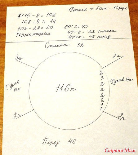 4. Сделать корректировку: Вычесть 4 петли из петель спинки, добавить к петлям переда.