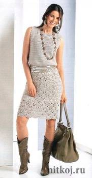 Платье связано из пряжи "Кенгуру" Состав: 95% шерсть, 5 % - кенгуру. Вес: 100 г. Длина нити в мотке - 300 м.