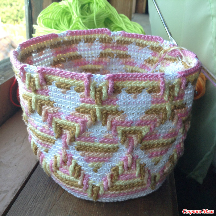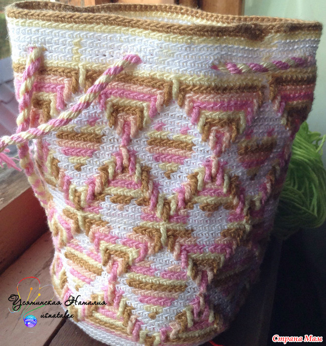 А моя мочила так и лежит в недовязах. С ручкой маюсь, очень понравился ваш вариант, не дадите ссылочку на эту технику? Все что нашла- узенькие ремешки, а вот чтоб был широкий ремень-не могу найти. Буду благодарна за помощь.