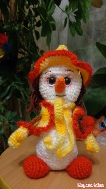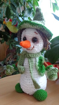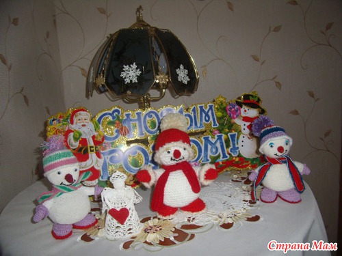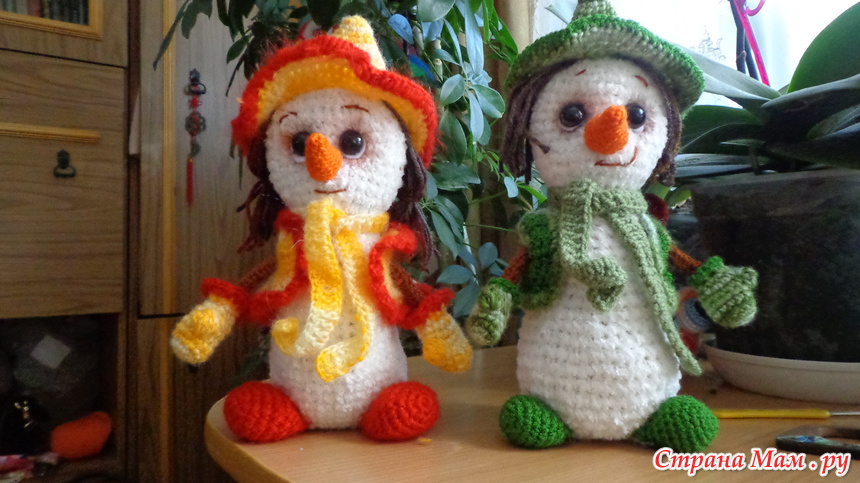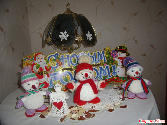 Нашла описание, немножко переделала и вот мои снеговики.