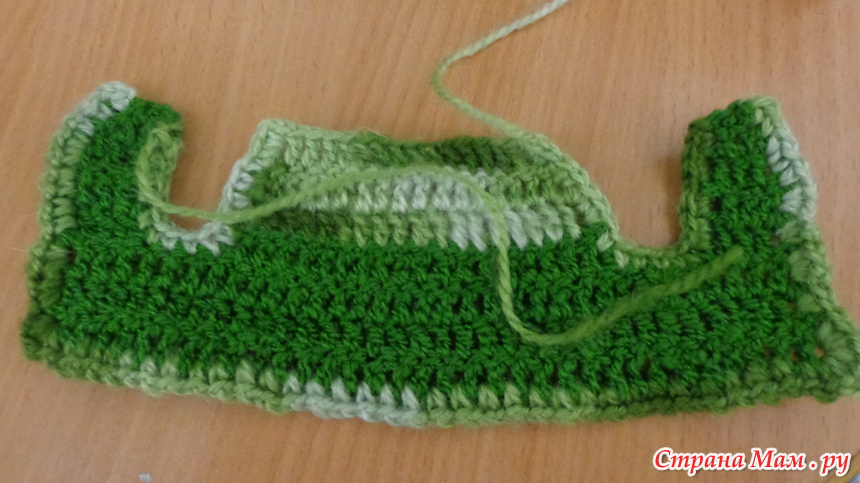 Заканчиваем вязание - столбик без накида и 3 воздушный петли- в каждую петлю предыдущего ряда. обрываем и прячем нить