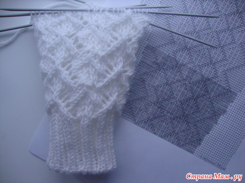 Так вяжем примерно 33-35см до уровня начала ажурного узора.