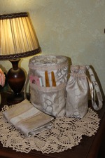 Здравствуйте, дорогие девочки. Предлагаю Вашему вниманию еще один набор для рукодельницы. Он состоит из клубочницы, органайзера для крючков и мини-клубочницы. Выполнен из итальянской тафты и тафты-жаккарда (компаньоны). Износостойкая и очень красивая ткань. Все детали укреплены дублерином и синтепоном.